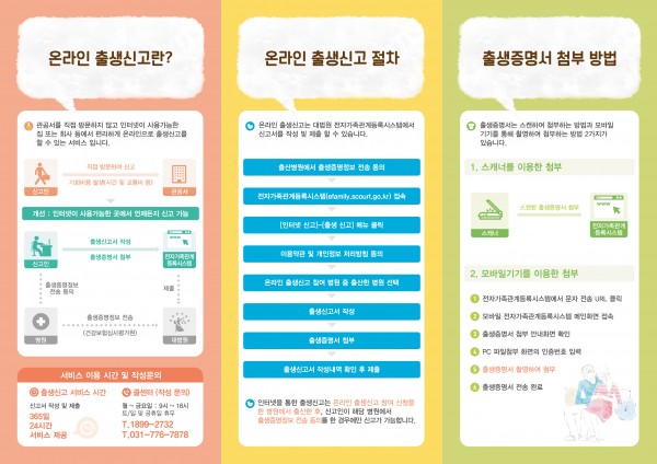 집 또는 회사 등에서 편리하게 출생신고를 할 수 있는 서비스로서